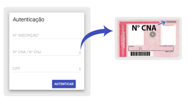 Você deverá usar o seu CPF, nº OAB e nº CNA