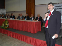 Fizeram parte da mesa de abertura do Simpósio o Presidente e o Vice-Presidente da ABRAT, Jerfeson Calaça e Joel Resende, respectivamente, o Presidente da ABAT Ricardo Caribé, o Vice-Presidente da OAB-BA, Antônio Menezes e a Vice-Presidente do Instituto dos Advogados do Brasil, Moema Batista. Durante a manhã, foram ministradas três palestras. Os advogados Fredie Didier e Antonio Carlos Oliveira debateram as inovações do Anteprojeto do CPC e suas repercussões no Processo Trabalhista. Já o Desembargador do TRT da 5ª Região, Edilton Meirelles, discutiu sobre os princípios constitucionais trabalhistas e sua aplicação imediata, independente de lei regulamentar. No fim da manhã, o Desembargador do TRT5 pelo Quinto Constitucional, Cláudio Brandão, falou sobre o novo processo eletrônico.