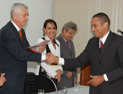 Em seguida, deu a palavra ao padrinho da turma, o advogado e professor Antonio Adonias. Iniciando seu discurso, ele convocou os novos colegas a experimentar a advocacia e se deixar apaixonar pela profissão. "Ao longo da carreira, vocês encontrarão muitos obstáculos e vão superar muitos problemas, mas é uma viagem apaixonante e eu espero que vocês a comecem hoje e exerçam a profissão de maneira plena", afirmou. Ele também fez questão de lembrar que o advogado é muito mais do que um simples redator de petições e belas obras. "Quando um cliente nos procura, ele busca segurança e somos nós que garantimos esse direito a ele", pontuou. Ao final, Antonio Adonias, que também é presidente da Comissão de Apoio ao Advogado Iniciante, convidou aos novos colegas a participar ativamente da Ordem e das suas comissões.