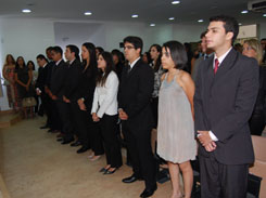 A Seccional realizou na tarde de hoje, 10, solenidade de entrega de Carteiras a 99 novos advogados no auditório da entidade. Ao abrir a sessão, o Presidente da OAB-BA, Saul Quadros, deu as boas-vindas aos novos colegas e lembrou a importância dessa solenidade na vida profissional do advogado. Ele ainda fez questão de compartilhar com os presentes o empenho da Ordem para o rápido início da construção da nova sede da Seccional, a ser edificada no terreno doado em agosto pelo Governo do Estado no Centro Administrativo da Bahia. "Pretendemos para os próximos anos que as solenidades da OAB-BA já sejam realizadas na nova e moderna sede que pretendemos construir no CAB, com maior conforto e viabilidade para todos os nossos convidados", pontuou.
