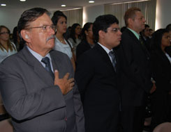 Em seguida, passou a palavra ao paraninfo da turma, o advogado Taurino Araújo, que contou sobre o início de sua carreira profissional. "Apesar de ter começado minha trajetória há algum tempo, hoje tive a mesma ansiedade de quando recebi minha carteira de estagiário", afirmou. O advogado, na oportunidade, leu o poema "Se a Natureza quer fazer um homem", de Ângela Morgan, em tradução de Marcos Oliveira. Os versos tratam de idealismo, verdade e bondade.