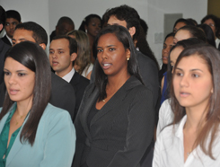 Foi feita então a leitura do juramento pelo estudante Pedro Braga de Castro Souza. E o Vice-Presidente Antônio Menezes deu início à entrega das carteiras.