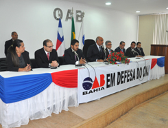 A Mesa Alta da solenidade foi composta, além do Vice-Presidente e do Paraninfo, do Secretário-Geral Adjunto, André Godinho, dos advogados Marcos Barroso (que é Presidente do Instituto dos Advogados Previdenciários), André Arruda, Leandro Gramacho, Martone Maciel, Marilena Galvão (que é Presidente da Comissão de Proteção aos Direitos da Mulher da OAB-BA) e do conselheiro da OAB-BA, Sergio Paiva.