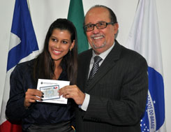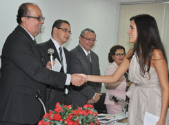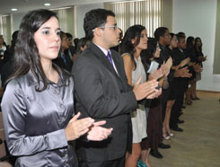 Posteriormente foi feita a leitura do juramento pela acadêmica Amanda de Amorim, e o Secretário-Geral deu início à entrega das carteiras. A Mesa Alta da solenidade foi composta, além de Nei Viana e de Antonio Lomba, por Angelica Almeida Costa, Daniela Sena Costa, Tiago Brasão dos Santos Pessoa, Marildete Silva Brito, Mirtes Viana, Eraldo Sacramento e Geovan Brasil.