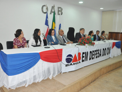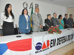 Além do Presidente da Seccional, a Mesa Alta da solenidade foi composta pelo Vice-Presidente da OAB-BA, Antônio Menezes, o Secretário-Geral Adjunto, André Godinho, a Juíza Jeonice Maria Guimarães de Jesus, as advogadas Teodomira Costa Menezes, Amanda Lisboa, o representantes dos pais, Salvador Neuracir, a representante das mâes, Marleide Souza de Almeida, a representante das avós, Eunice Cardoso de Almeida.