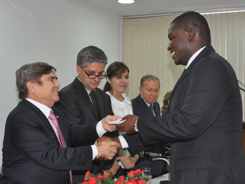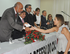 Leu ainda um texto de autoria de George Carlin e, em seguida, convidou a estudante Maria Alice de Oliveira Santa Inês, para fazer a leitura do termo de compromisso. Logo depois deu início à entrega de carteiras.