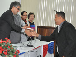 Em seguida, o estudante Lucas Gabriel Santos Costa, fez a leitura do termo de compromisso. Logo depois o Presidente Saul Quadros deu início à entrega de carteiras.