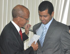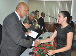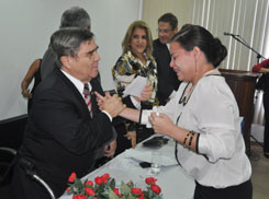 Em seguida, a leitura do Termo de Compromisso foi feita pelo bacharel Efson Batista Lima que, entre a turma, obteve a nota mais alta no Exame de Ordem. Logo depois Saul Quadros deu início à entrega de carteiras.