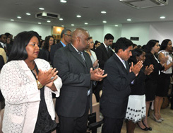 A Mesa Alta da solenidade foi composta, além do Vice-Presidente, dos advogados Marcelo Bitencourt Amaral, Georgete Barroso, Jorge Barroso, Gino Muraro, pela representante das mães, Selma Pires Moreira, das avós, Maria Tereza Simões, e dos avôs, Adilson Pereira de Souza.