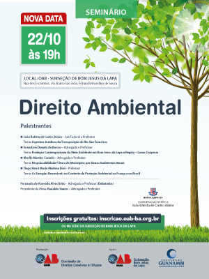 Local: OAB - Subseção de Bom Jesus da Lapa, Rua dos Escoteiros, s/n, Bairro São João, Fórum Bernardino de Souza.