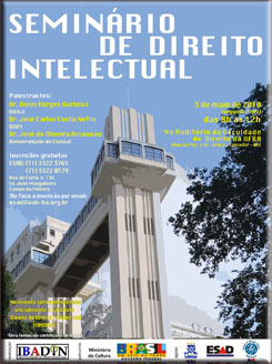 Seminário discute Direito Autoral e Propriedade Industrial. Questões contemporâneas do Direito Autoral e da Propriedade Industrial estarão sendo discutidas no Seminário de Direito Intelectual, que será realizado no próximo dia três de maio, das 8h às 12h, na Faculdade de Direito da Universidade Federal da Bahia (UFBA), na Graça. O evento contará com a participação dos renomados juristas José Carlos Costa Netto, José de Oliveira Ascensão e Denis Borges Barbosa. Este é o primeiro seminário organizado pelo recém-formado Instituto Baiano de Direito Intelectual (Ibadin) - associação civil, sem fins lucrativos, que tem a finalidade de estudo, pesquisa do Direito Intelectual, a defesa dos interesses, direitos e deveres dos profissionais ligados à área da Propriedade Intelectual. Entre os temas que serão discutidos estão o papel do Estado no fomento das inovações tecnológicas; o panorama do Direito Autoral no Brasil e a proposta de reforma da Lei nº 9610/98 (Lei de Direito Autoral) e que está na iminência de ser publicada para conhecimento da sociedade.