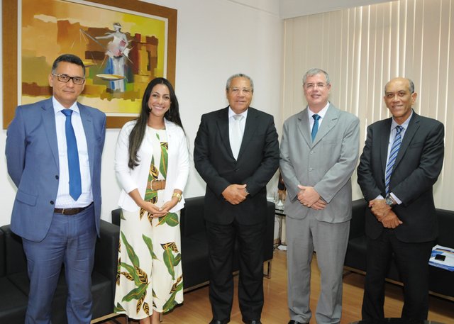 Integrantes do Tribubal de Justiça do Estado da Bahia (TJBa) realizaram uma visita à Diretoria da seccional Bahia da Ordem dos Advogados do Brasil, nesta terça-feira (3). Participaram do encontro com o presidente da OAB-BA Luiz Viana Queiroz e com a vice-presidente Ana Patrícia Dantas Leão, o 1º vice-presidente do TJBa, Augusto de Lima Bispo, e os juízes assessores Raimundo Nonato Borges Braga e Joseferson Silva Oliveira.