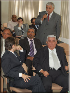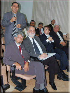 Integrando a mesa, o presidente da OAB-BA Saul Quadros, o Vice-Presidente Antonio Menezes, o Secretário Geral Nei Viana, o Secretário Adjunto André Godinho, os Desembargadores do TRT Roberto Pessoa e Alcino Filizola e os Conselheiros Federais Ruy João e Sílvia Cerqueira.
