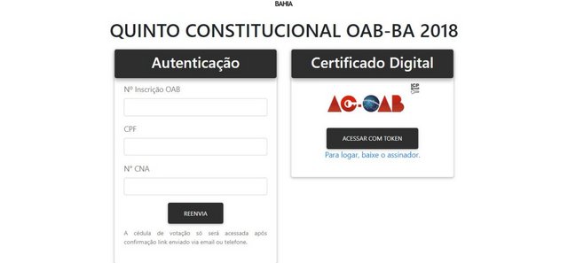 Votação do Quinto Constitucional poderá ser feita também com o token